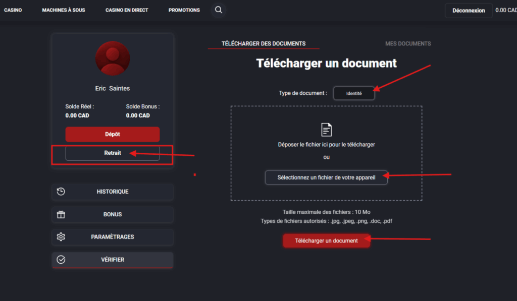 Avant tout retrait, le compte doit être vérifié. Si vous ne l’avez pas fait au moment de l’inscription, vous devez impérativement avant le retrait.